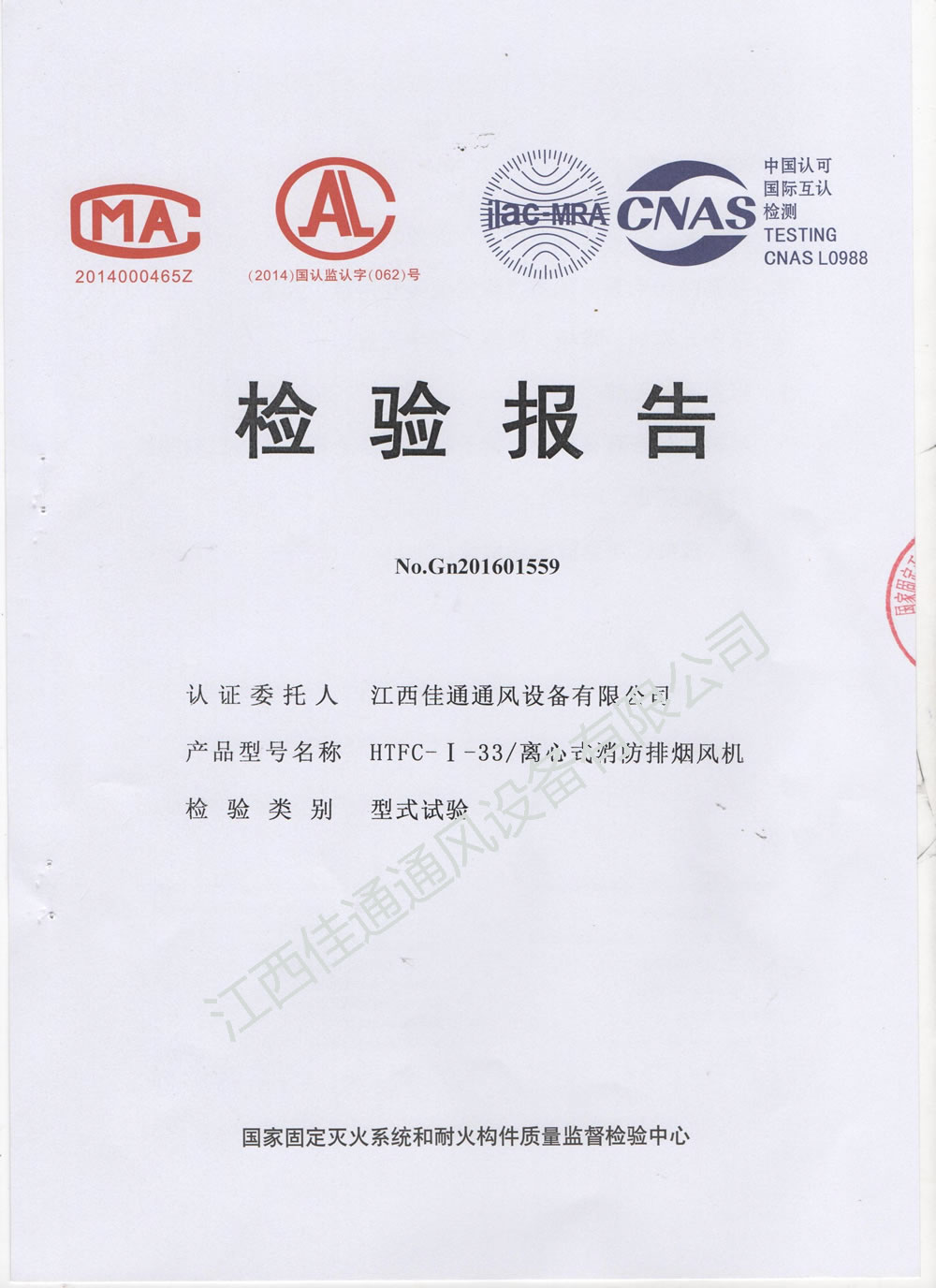 > HTFC-I-33離心式消防排煙風機檢測報告