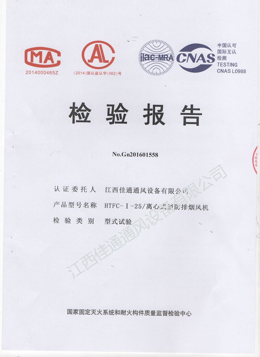 HTFC-I-25離心式消防排煙風(fēng)機檢測報告