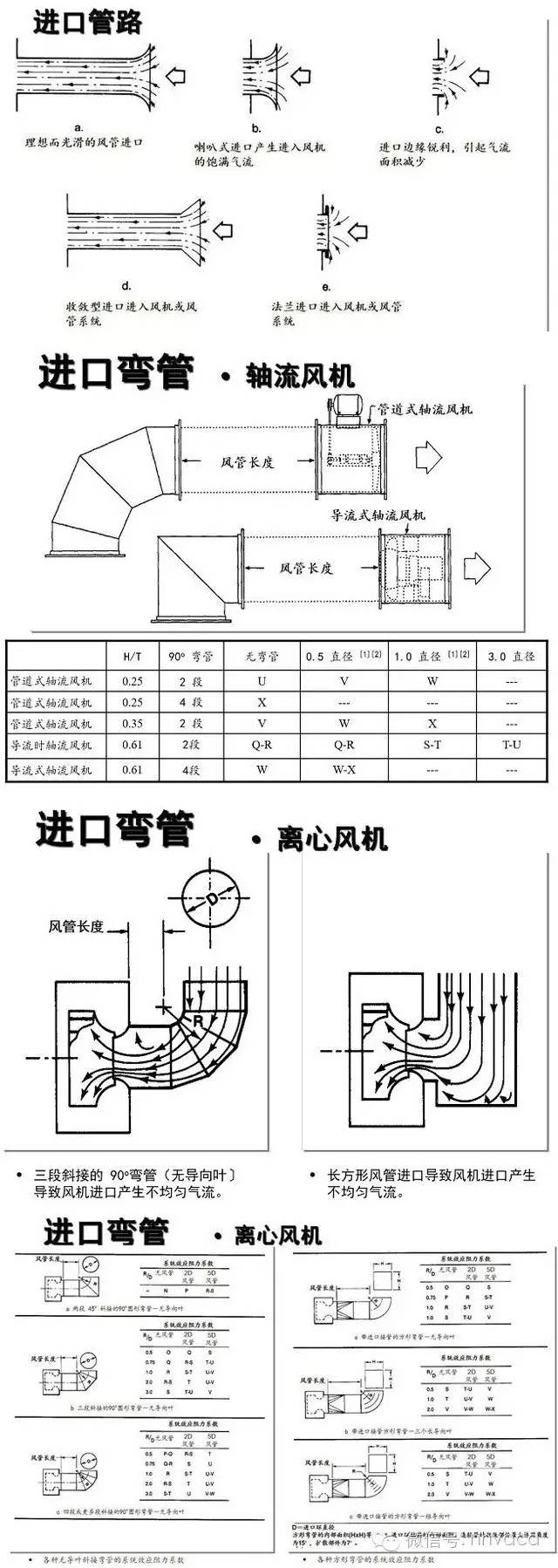 當空間或其它因素迫使風機的進出口連接采用不良布置時,在設計計算中需考慮適當的余量。