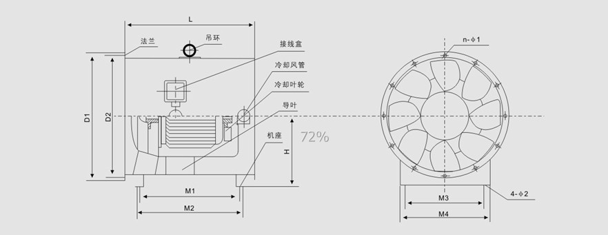 3、HTF-I、HTF-II表示常壓型消防高溫排煙專用風機,葉型采用軸流式:HTF-I(單速)和HTF-II(雙速)兩種;HTF-III、HTF-IV表示中壓型消防高溫排煙專用風機,葉型采用斜流式:有HTF-III(單速)和HTF-IV(雙速)兩種。