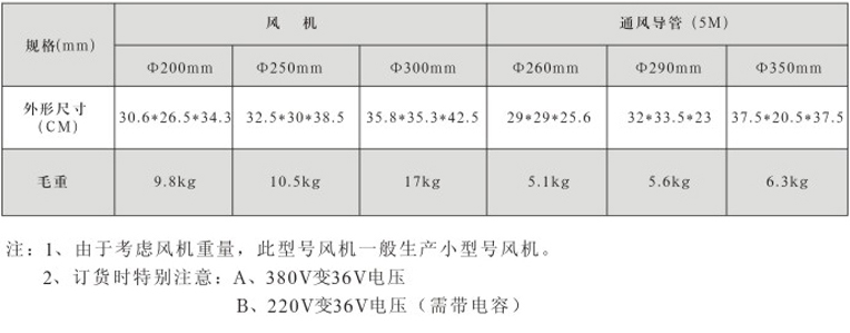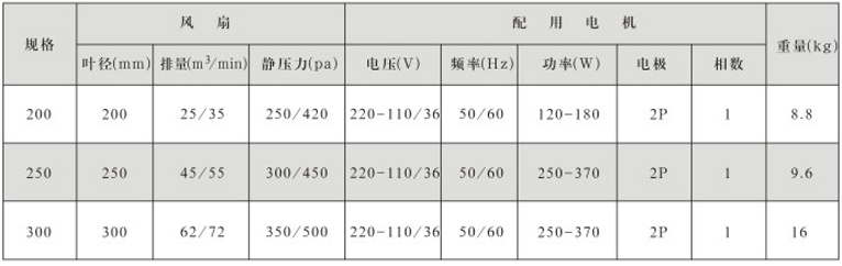 風機直徑:Φ200~300mm,