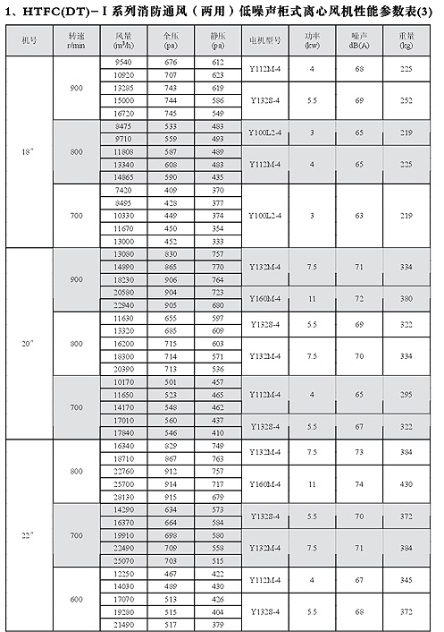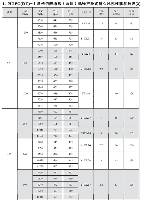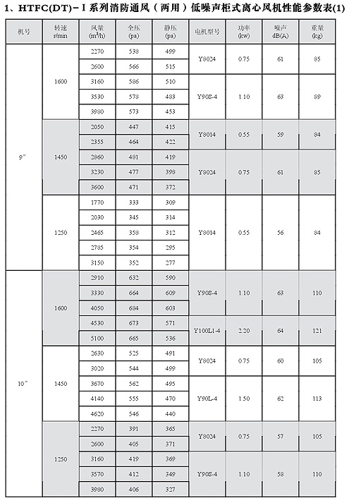 HTFC(DT)-I消防低噪聲柜式離心風(fēng)機性能參數(shù)
