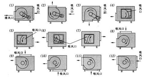 消防高溫排煙低噪聲雙速柜式風(fēng)機(jī)進(jìn)出風(fēng)口位置編號表