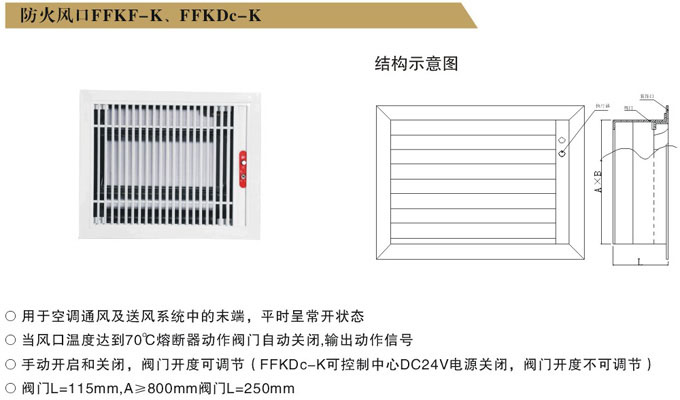 2、防火風口用于通風空調系統的末端,其動作溫度為70℃。火災時需在送排風口隔斷火源。