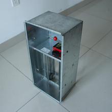 常閉自垂式多葉送風口通常安裝在走廊、無窗房間的排煙系統上,一般在側墻上安裝。平時常閉,發生火災時,煙、溫感探頭發給控制中心火警信號,控制中心送DC24V電源給排煙口執行器,使排煙口迅速打開,也可手動打開進行排煙。當溫度達到280時,易熔片熔斷,使閥門迅速關閉。操作控制室應不小于250mm,以利于對閥門的手動控制和維護。