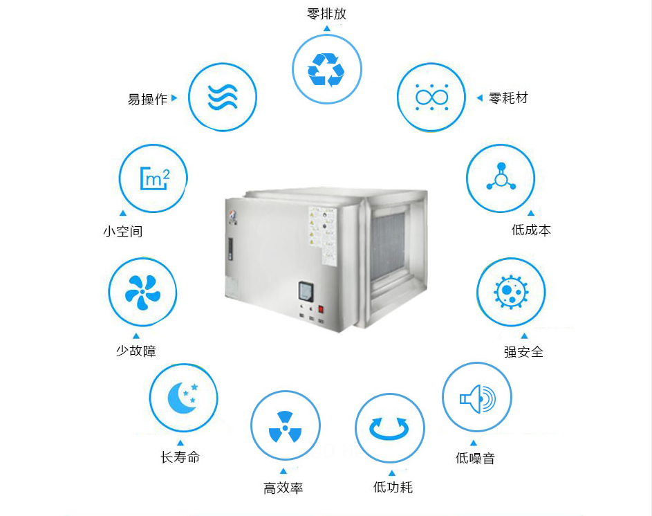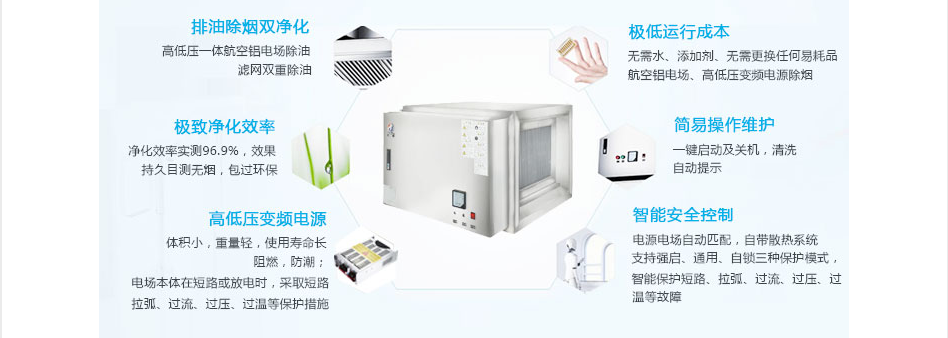 板式靜電電場模塊;進口特氟龍絕緣子;獨立的鋸齒形電離片;波浪形吸附極板;離子箱:純航空鋁材質,超寬,超厚,高密度;高低壓變頻靜電電源;